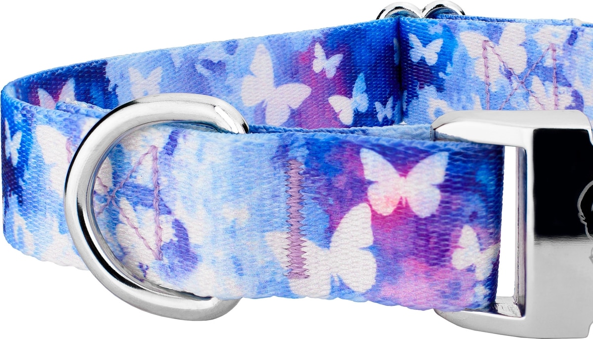 Country Brook Petz Premium Watercolor Butterflies Dog Collar, Blue, Small: 11 to 13-in neck, 5/8-in wide