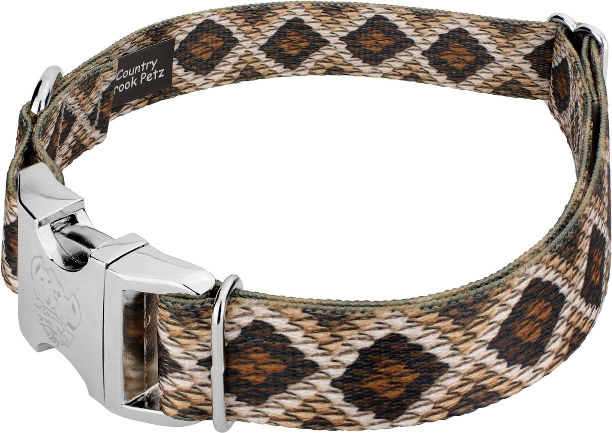 Country Brook Petz Premium Rattlesnake Dog Collar, Brown, 11 to 13-in neck, 5/8-in wide