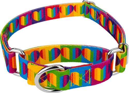 Country Brook Petz Rainbow Hearts Polyester Martingale Dog Collar, Small: 11 to 15-in neck, 5/8-in wide