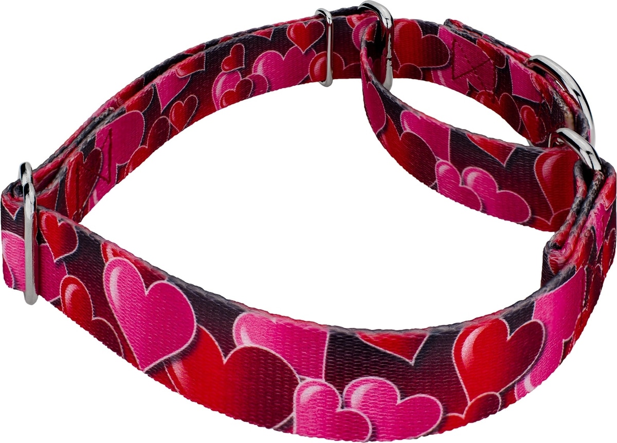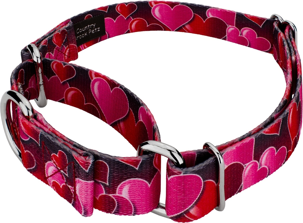 Country Brook Petz Romantic Hearts Polyester Martingale Dog Collar, Red, Small: 11 to 15-in neck, 5/8-in wide
