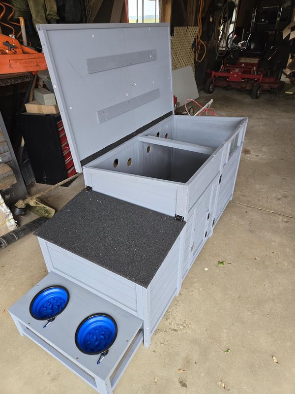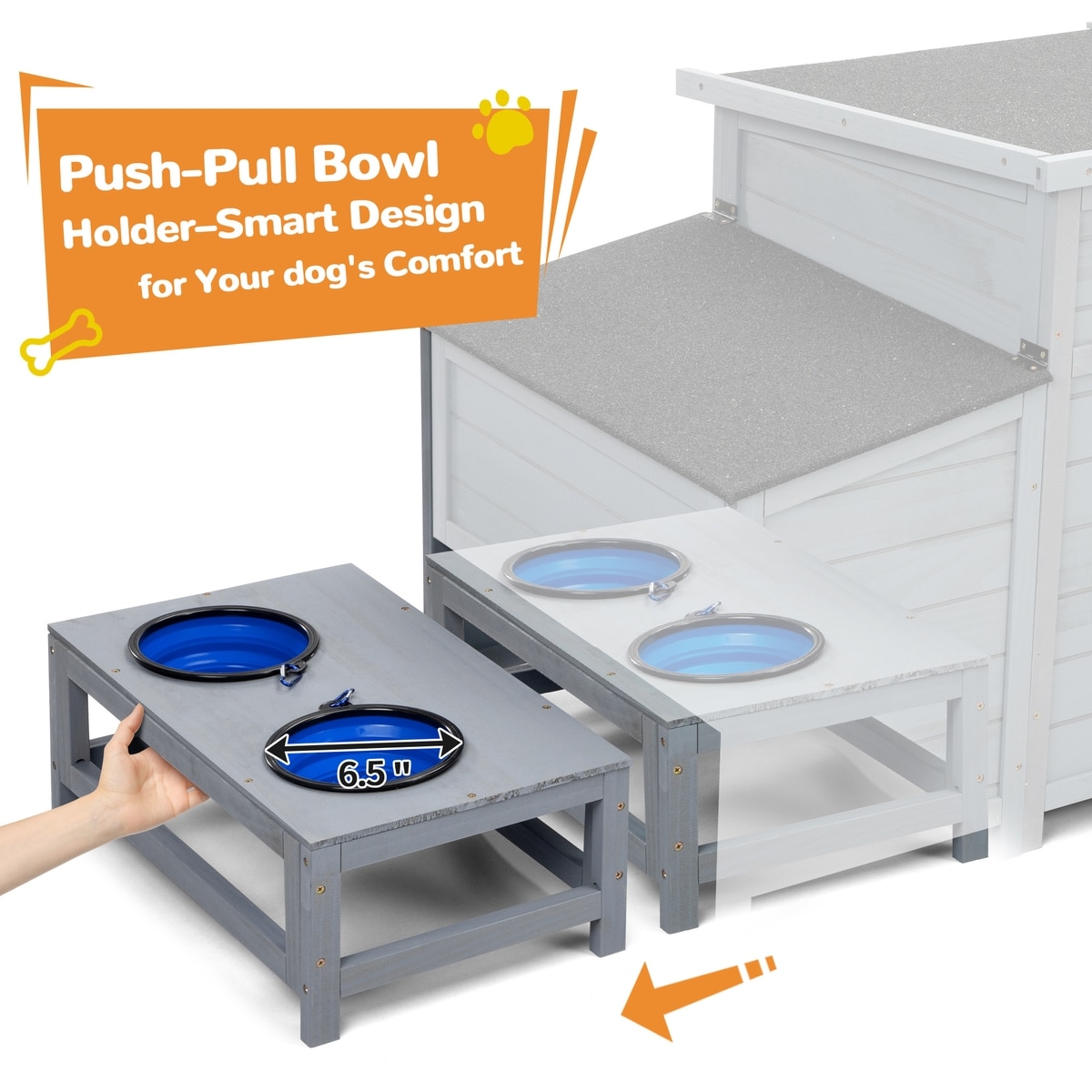 Coziwow Wooden Waterproof Outdoor Dog House with Slow Bowls & Storage Box, Grey, Large, 59-in