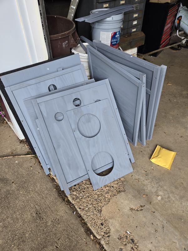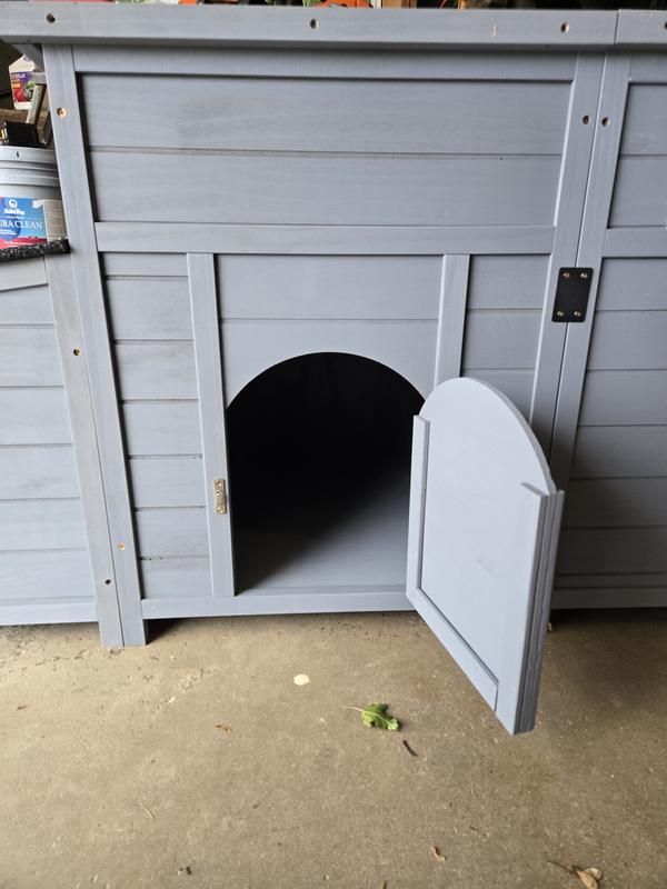 What a well-built Doghouse! (Ok, you have to assemble it, but it goes together easily, and is very sturdy. A Luxury Condo for you Best Buddy! This package is quite heavy, so get help to move it to your build location, or use a dolly or wagon. This is panelized, everything is pre-drilled, and yes, one person can put it together by themself. When I opened the package, I thought, “This looks familiar…” I checked, and my Rabbit’s Luxury Condo, is made by the same company! That has held up extraordinarily well, so I KNOW this Dog House will, as well. Oh, and your Buddy is going to love his/her place. Even the finish on the wood, is Pet-safe, just in case you have a puppy or a chewer. Easy to get into for clean-outs, too!