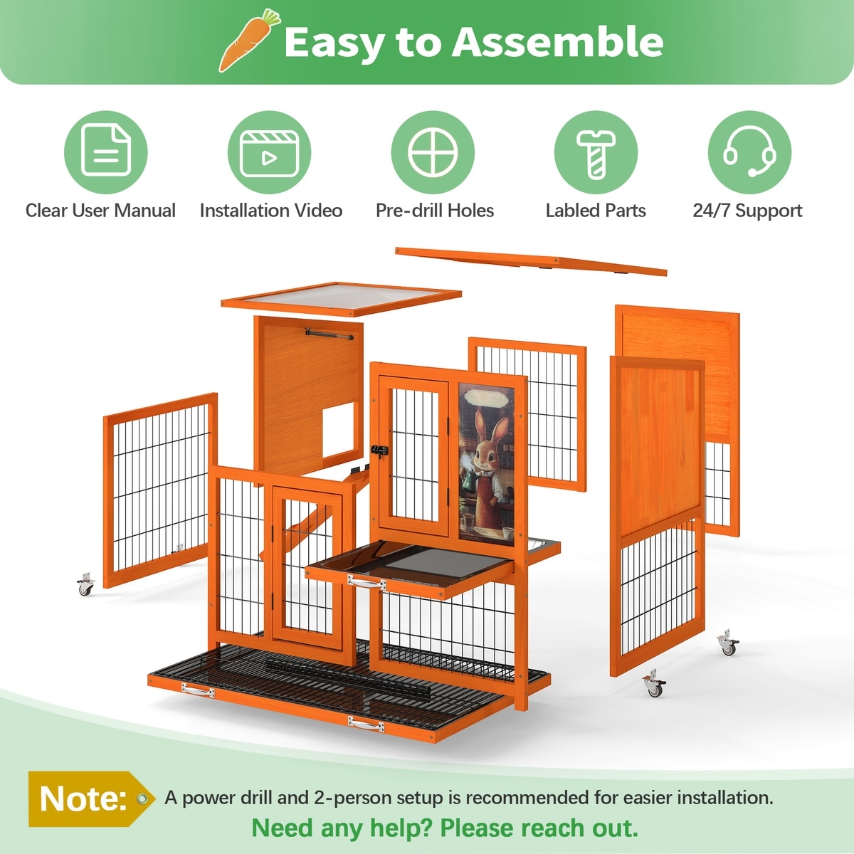Coziwow 2-Tier Outdoor & Indoor Wooden Rabbit Hutch with Wheels & Pull-Out Trays, 38.98-L, Orange