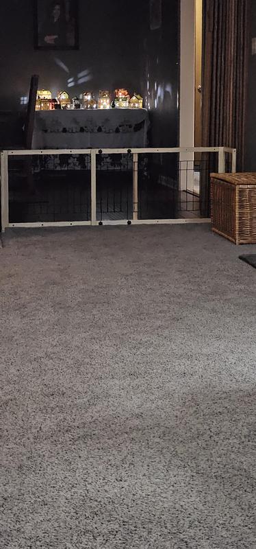 - Create a secure space for your paw-tner with this freestanding gate—no need for a crate!