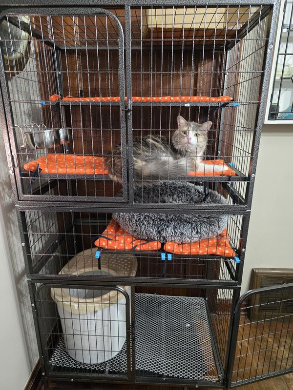 Coziwow 3-Door Heavy Duty Cat Cage Playpen with Wheels, Black, 63 inch