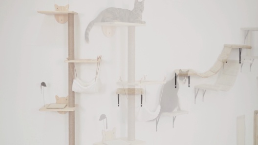 - A cloud-soft hammock sways, purr-fect for snoozes after wall-climbing workouts.