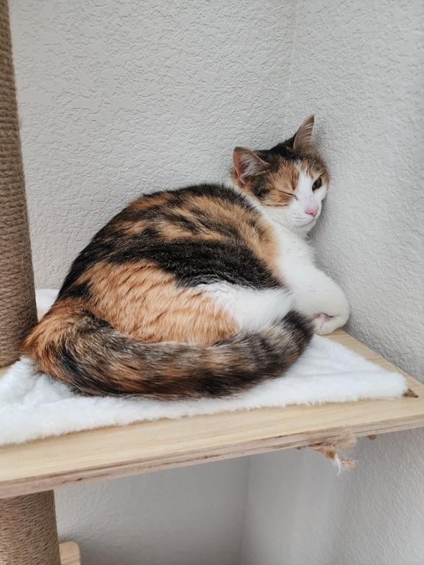 I like this cat tree, but it isn't exactly useful. It's finished wood without any grippies so my cat slides right off it. Cute, but also do expect to make some modifications to it foe it to work.