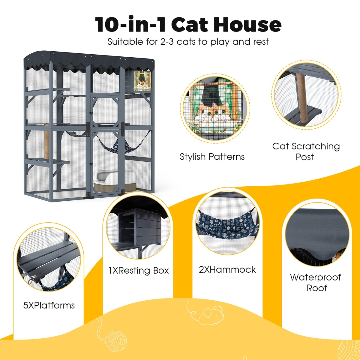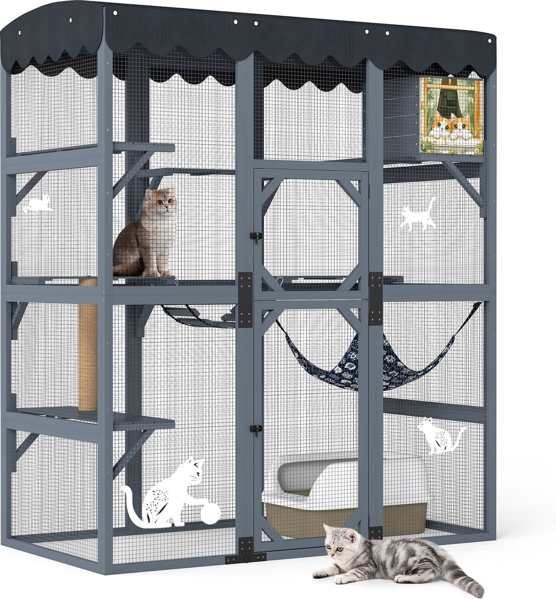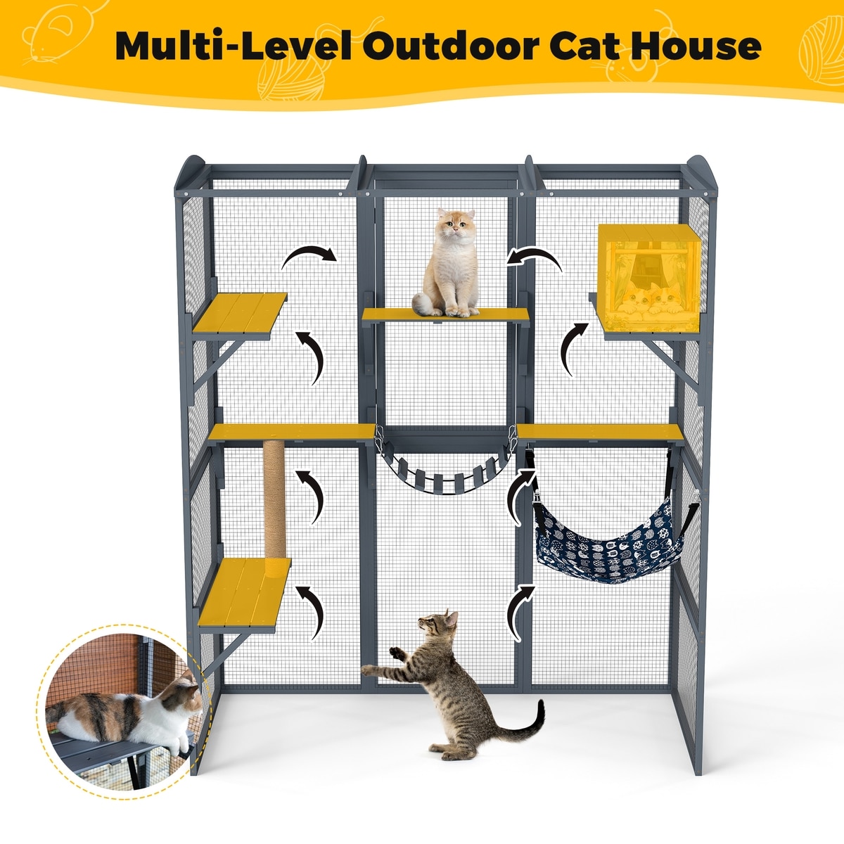 UV-resistant waterproof roof keeps your kitty cozy during rain showers and sunny days, while the fir wood frame and breathable wire mesh ensure long-lasting strength and ventilation.