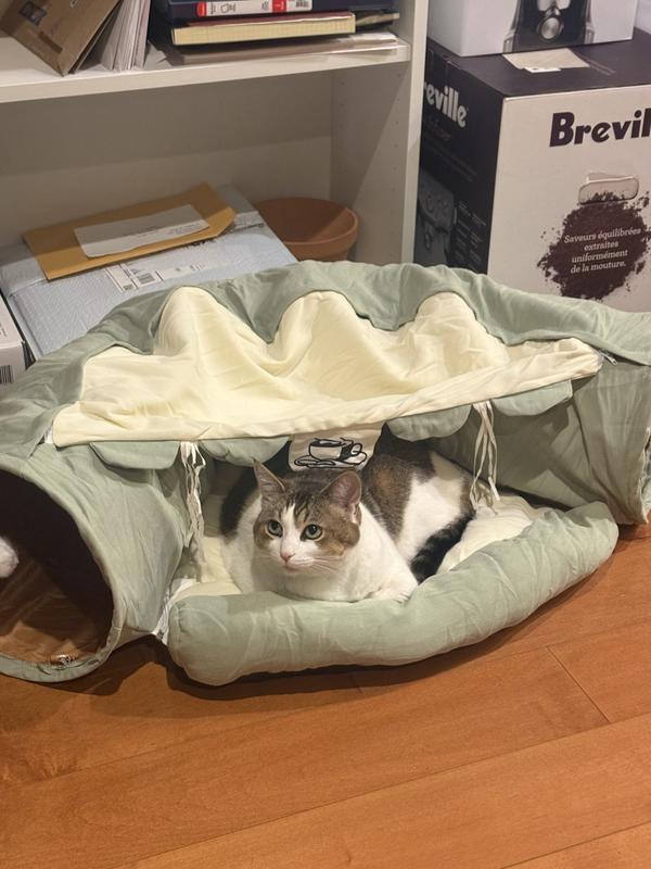 The Coziwow Cat Tunnel offers endless fun and comfort for your cat. With a spacious tunnel for play and exploration, plus a cozy bed at one end, it's perfect for both activity and rest. Each side features a plush pom-pom ball to keep your cat entertained.