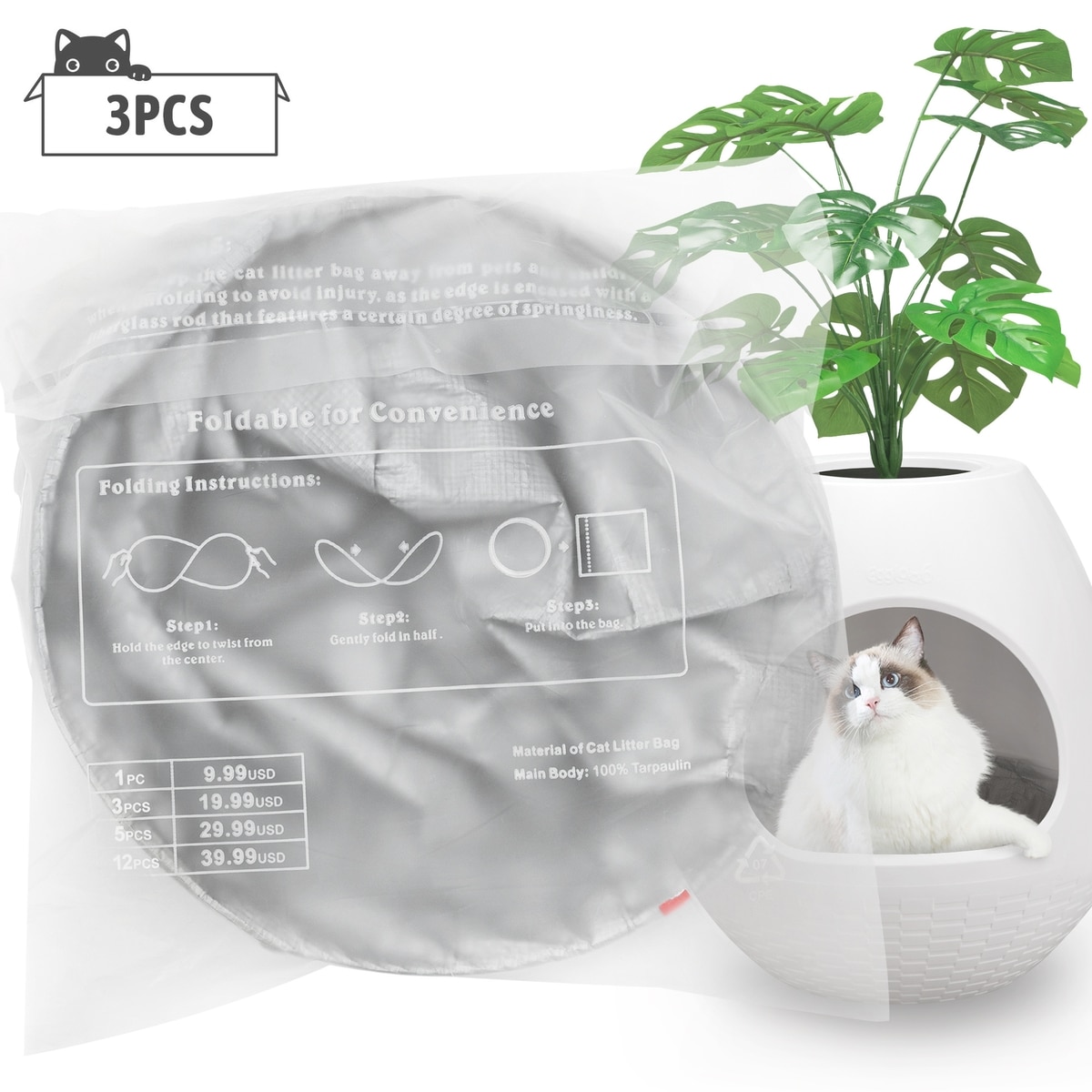 Coziwow Foldable Cat Litter Box Liners, Gray, Medium: 18.8 x 5.7-in, 3 count