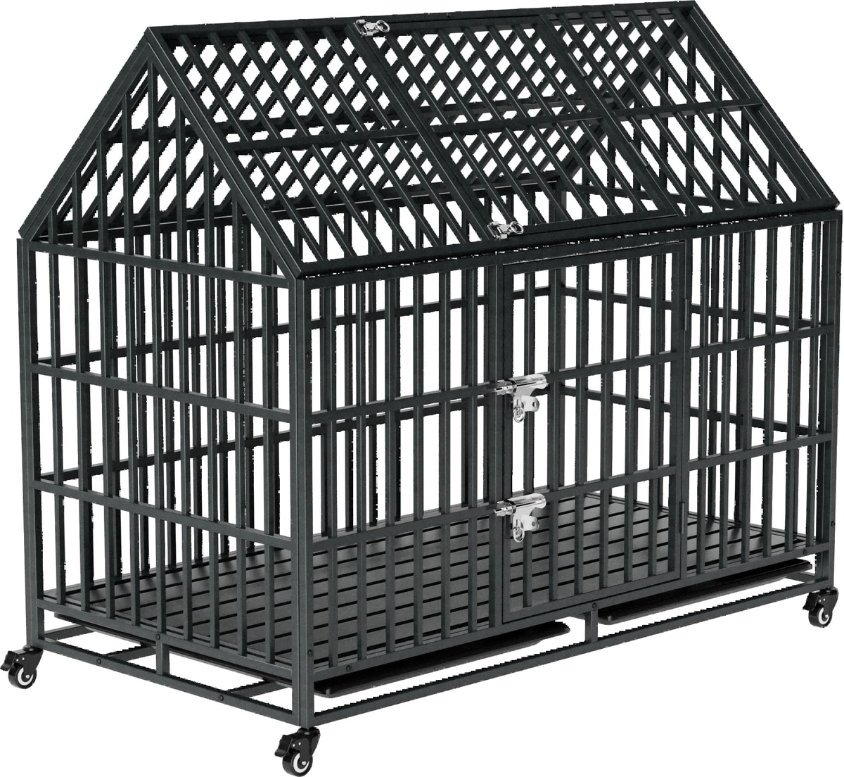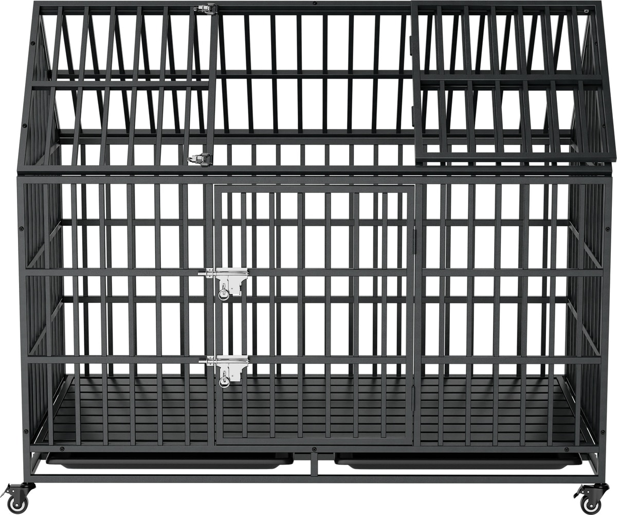 Made of thick MDF and galvanized iron, this crate is durable and rust-resistant, with waterproof surfaces that help keep things dry for your dog. The crate is designed to hold dogs up to 66 lbs.