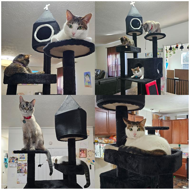 My cats absolutely love this cat tower! I have three cats and two of them spend most of their day just lounging around on this. There are multiple levels with keeps