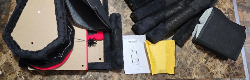 The materials felt a little cheap. When I put the cover on for the box it had torn. Also, the scratching pad doesn't touch the ground unless it is at a crazy angle