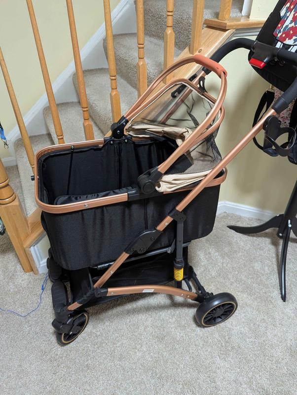 Coziwow Premium 3-in-1 Foldable with Detachable Carrier Dog & Cat Stroller, Black/Gold