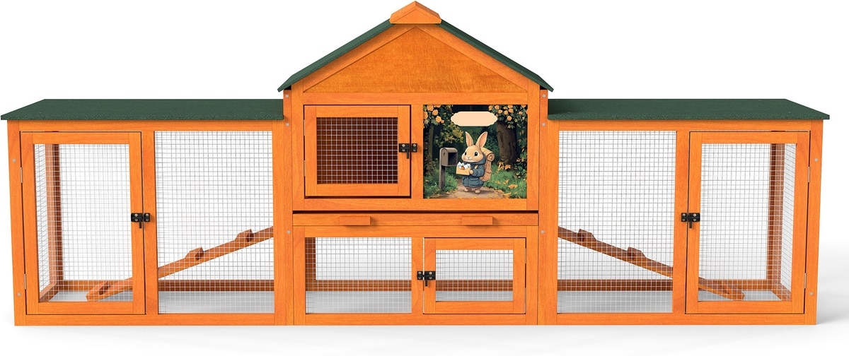 Coziwow Large Fashion Wooden Outdoor Rabbit Hutch, Orange