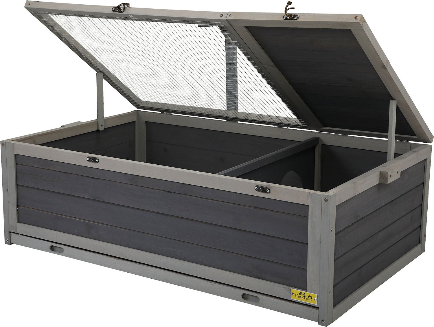 - Easily open the metal hinges and latches to the lids for tur-tal access to your pet.