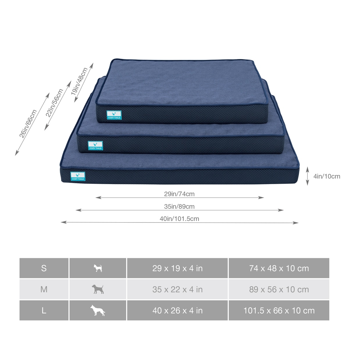 Cozy Tails Bamboo Charcoal Orthopedic Memory Foam Egg Crate Dog Bed, Navy, Large