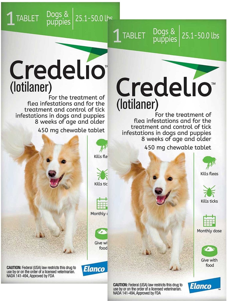 Credelio Chewable Tablet for Dogs, 25.1-50 lbs, (Green Box), 2 Chewable Tablets (2-mos. supply)
