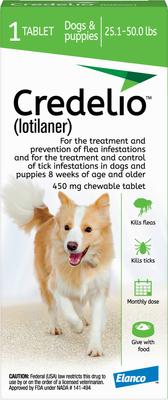 Credelio Chewable Tablet for Dogs, 25.1-50 lbs, (Green Box), 1 Chewable Tablet (1-mo. supply)