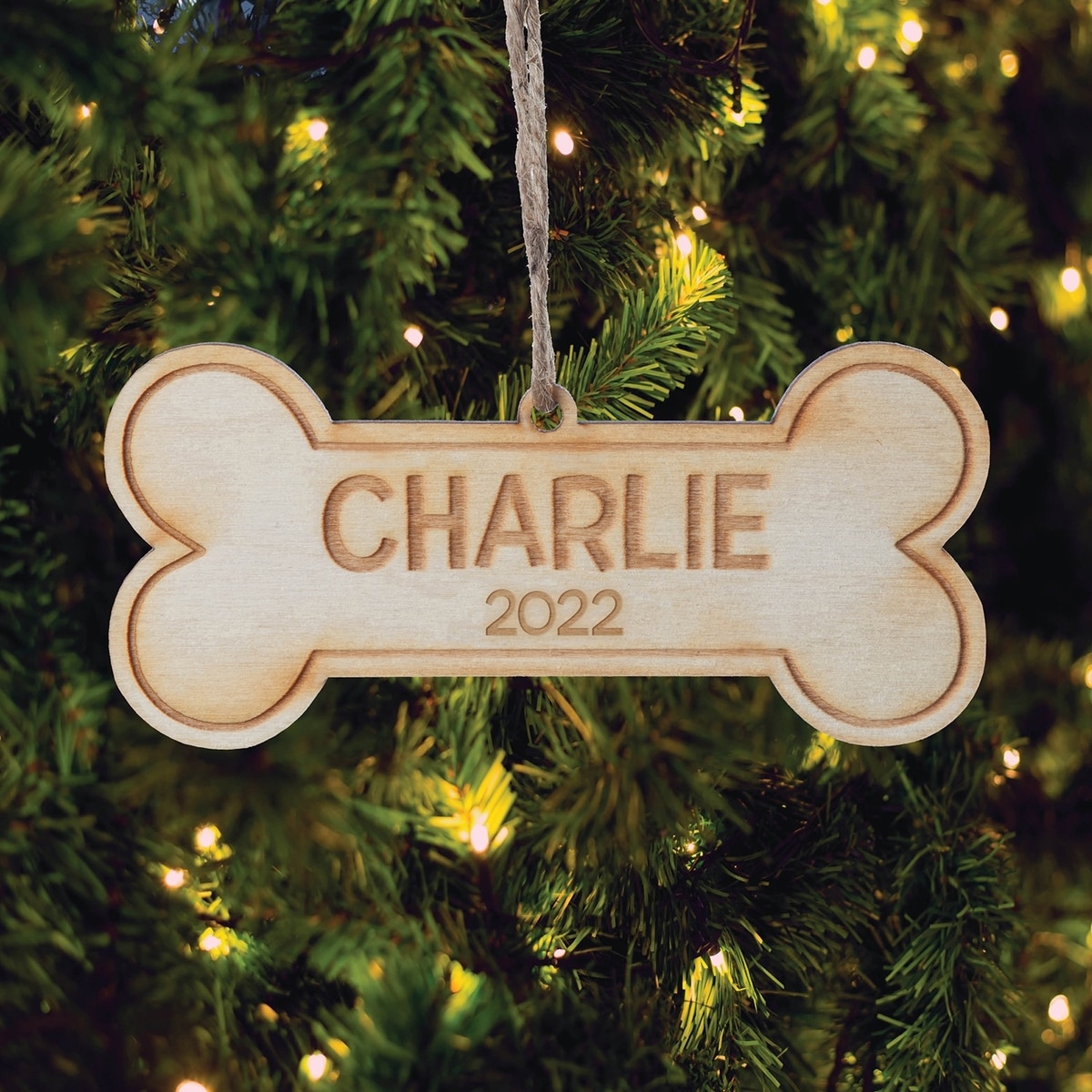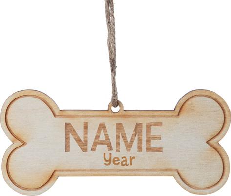 Custom Personalization Solutions Christmas Dog Bone Wooden Personalized Christmas Tree Ornament