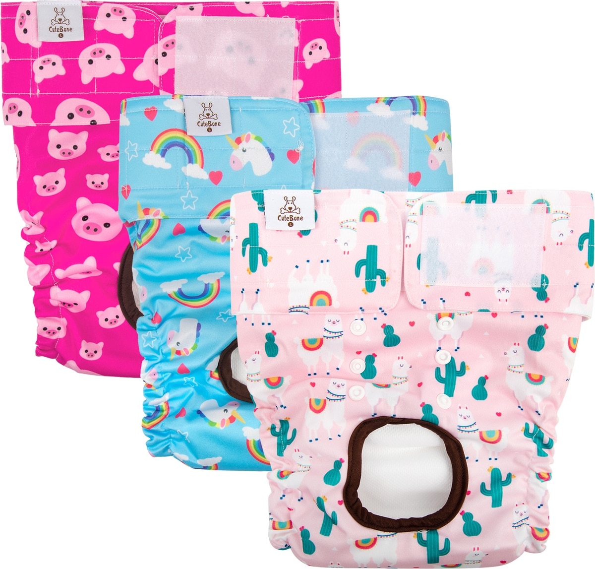 CuteBone Reusable Female Dog Diapers, 3 count, X-Large: 26 to 34-in waist, Unicorn & Pig & Sheep