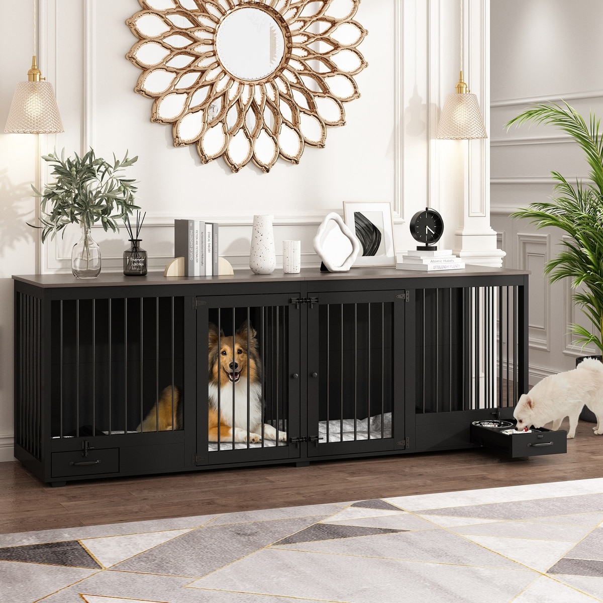 • It also includes 2 sliding dog bowl drawers for easy access to food and water without making a mess.