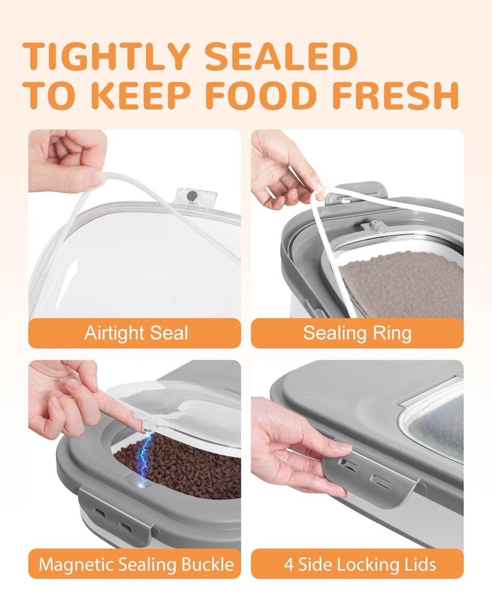 DDMOMMY Airtight Dog & Cat Food Storage Container with Lid, Wheels & Scoop, Grey, 23-lb capacity
