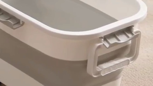 Had to get container to hold more food. This one fits easily in pantry and rolls in and out with ease
