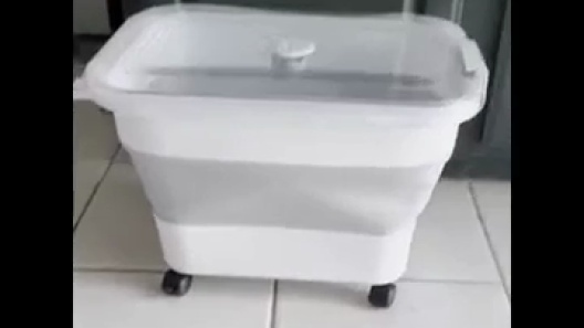 Detachable wheels make it easy to transport the container.