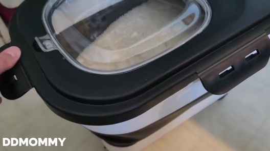 This container’s spacious interior can hold up to 23 pounds of dry pet food.