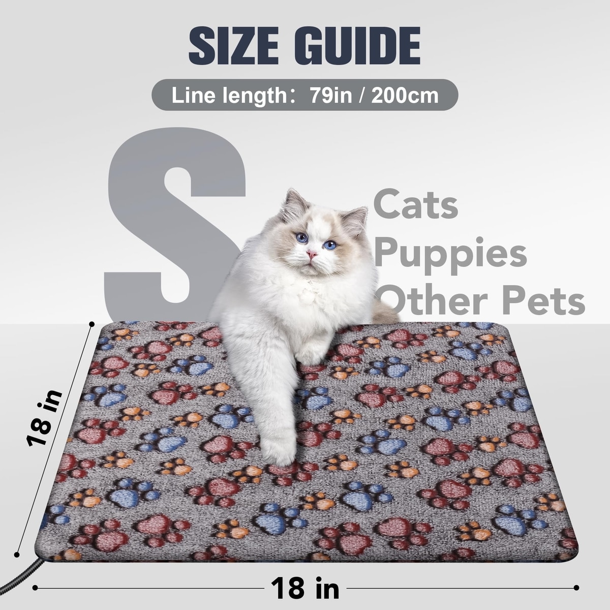 Decflow Waterproof Indoor 11 Adjustable Temperature with Timer Dog & Cat Heating Pad with Chew Resistant Cord Paw, Grey, Small: 18 × 18-in