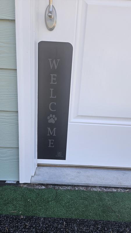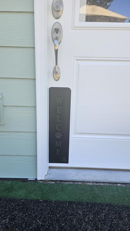 Deck the Door Decor Welcome Paw Print Engraved Dog & Cat Door Scratch Protection Plate, Satin Nickel, 6 x 22-in