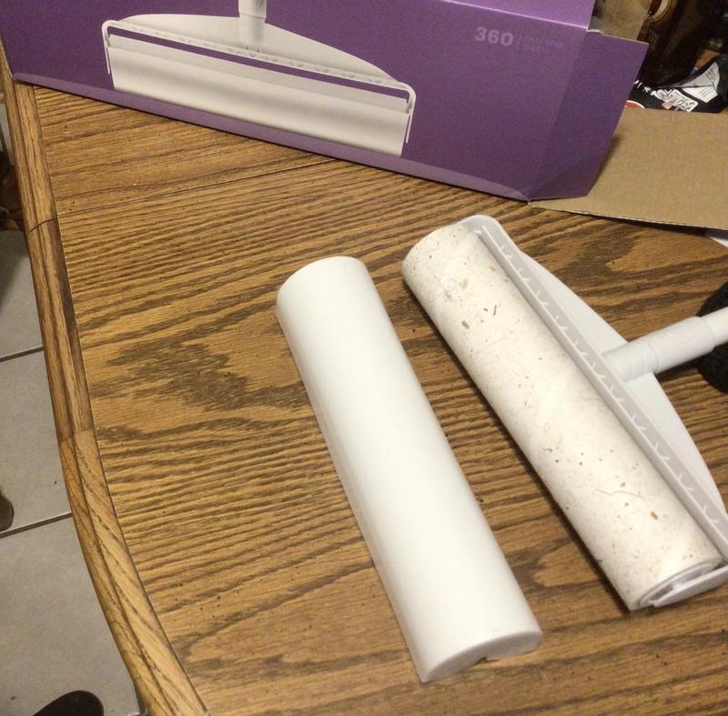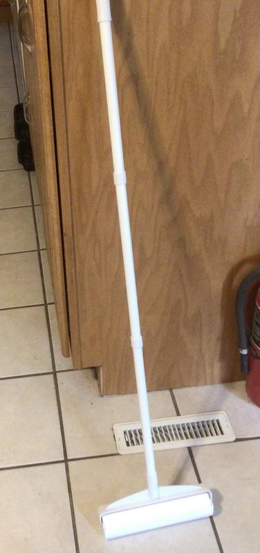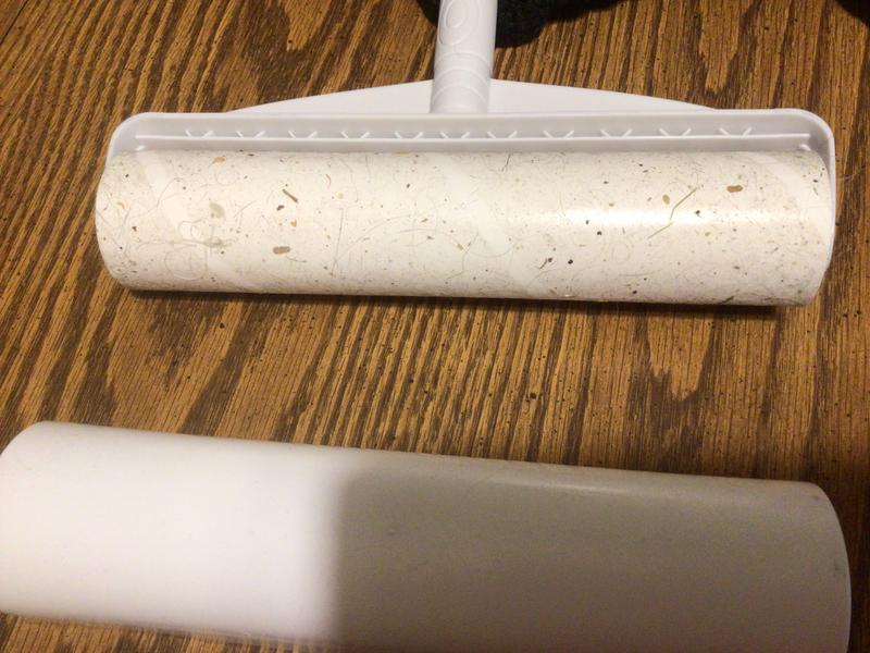 I received this product to try and review. This is basically a giant lint roller with an adjustable length arm. Took a bit to figure out to get the cover off and unpeel each layer. However it was very effective and convenient for cleaning fabric surfaces. This rolled very easy and smoothly. And the handle eliminates awkward bending over. I would definitely recommend to help clean surfaces. This is far better than using a lint roller.