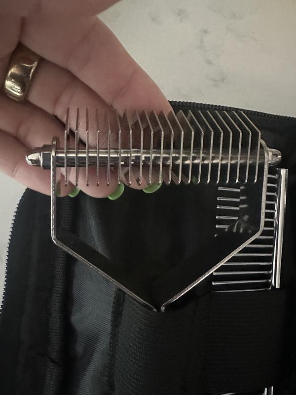 Really nice quality grooming tools. The comb was just the right width of teeth. It easily got through my long haired dachshund's hair whereas other combs have gotten