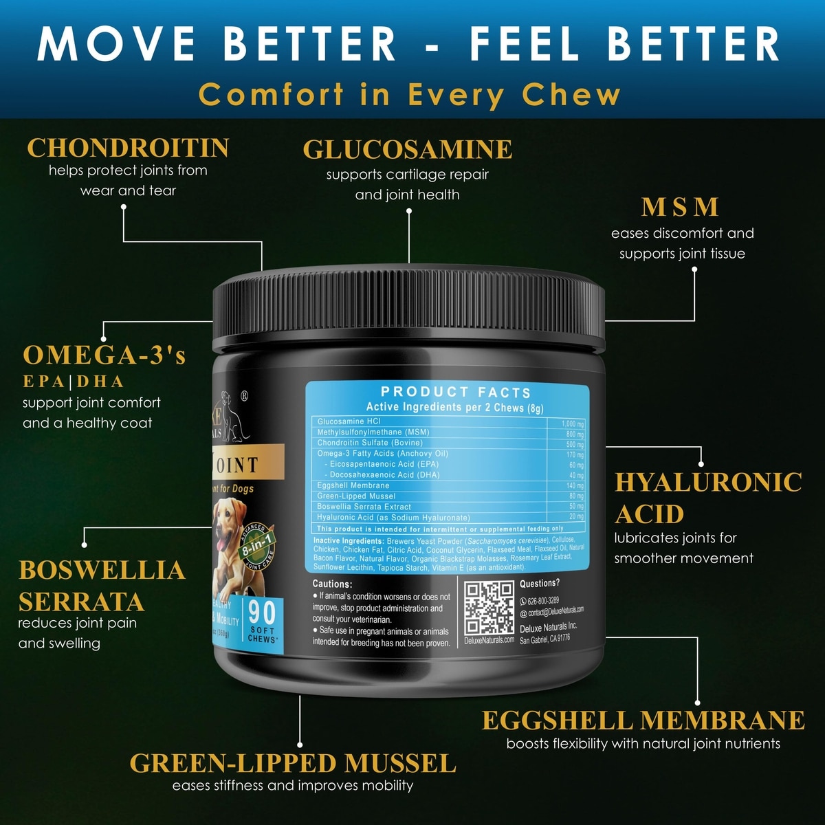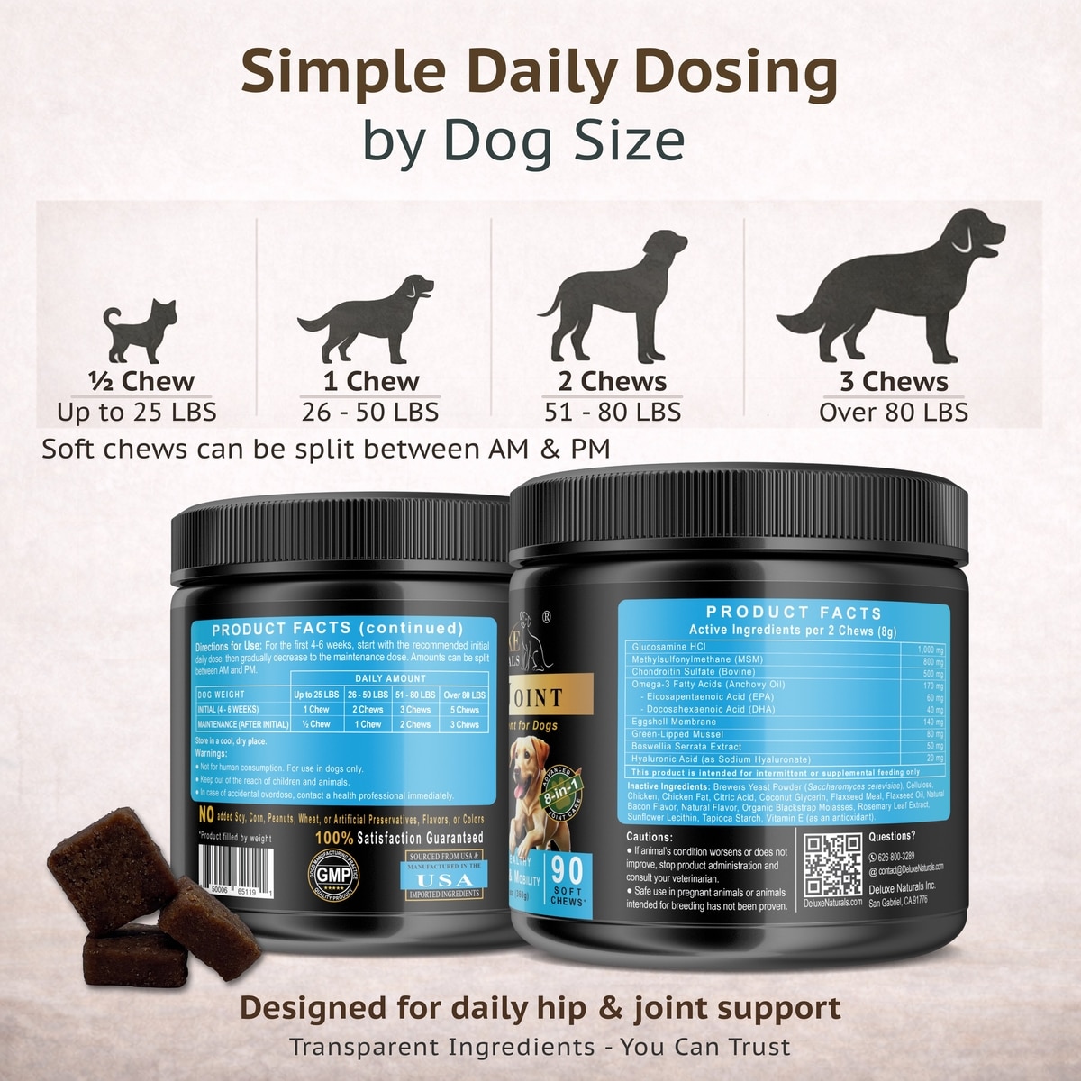 Deluxe Naturals Chicken & Bacon Flavored Soft Chew Hip & Joint Support Supplement for Dogs, 90 count