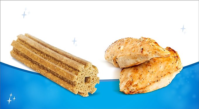 With a savory chicken flavor, these chews are irresistible to dogs. Their unique porous texture and distinct ridges help clean down to the gumline, reaching hard-to-clean teeth at the back of the mouth and reducing tartar buildup.