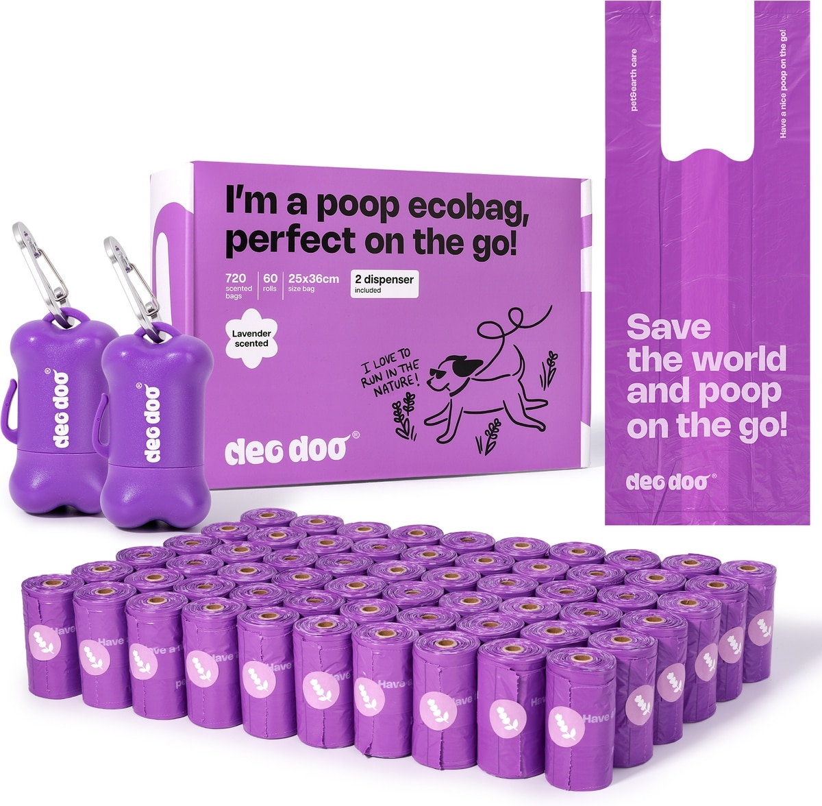 Deo Doo 2 Dog Poop Bag Dispensers with Bags & Handles, 720 count, Lavender Scented