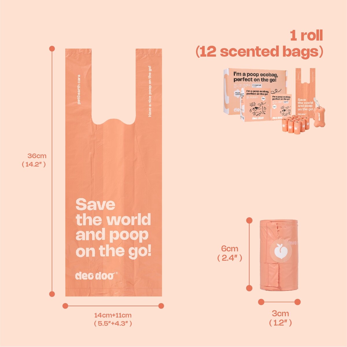 Deo Doo Dog Poop Bags with Handles, Peach Scented, 360 count