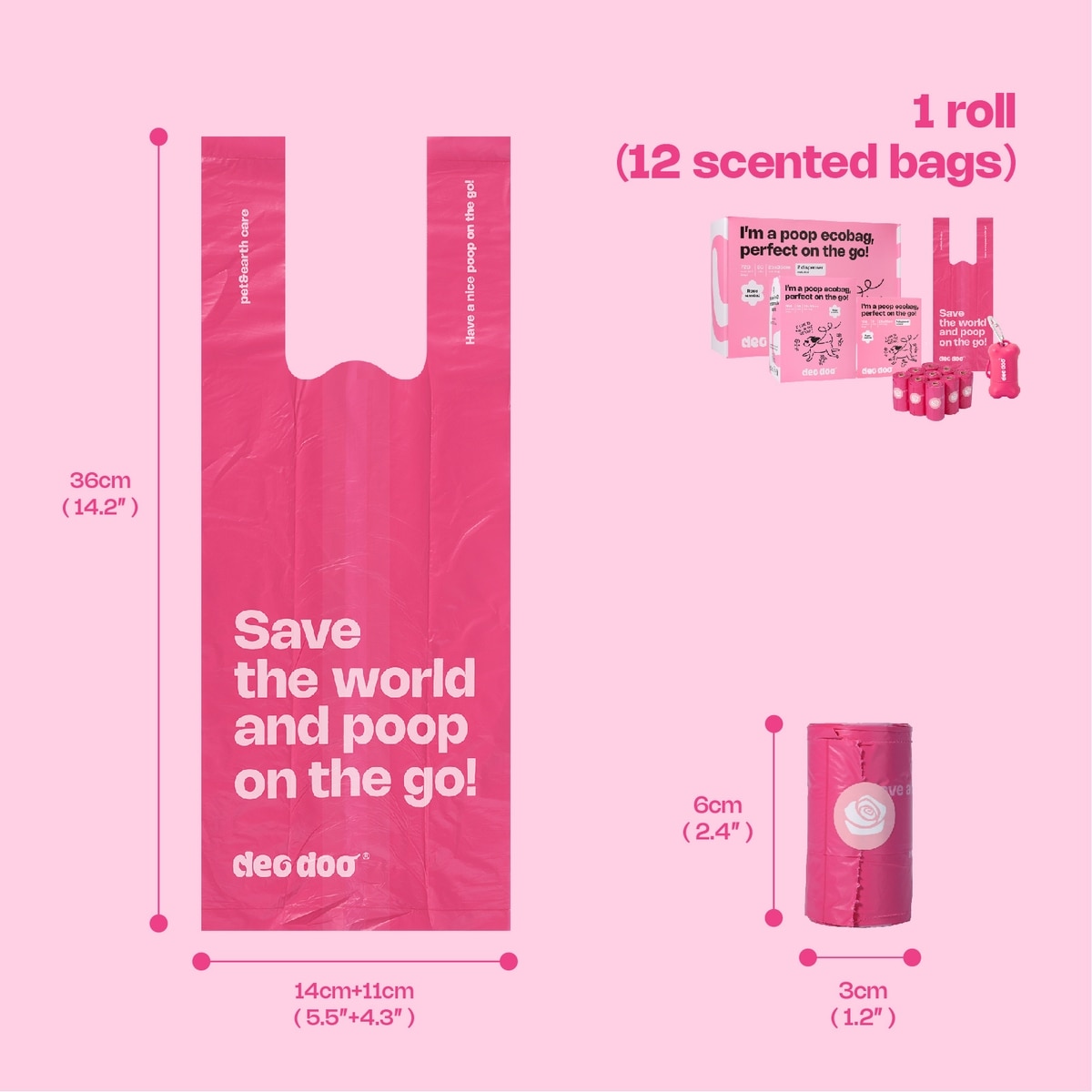 Deo Doo Dog Poop Bags with Handles, Rose Scented, 360 count