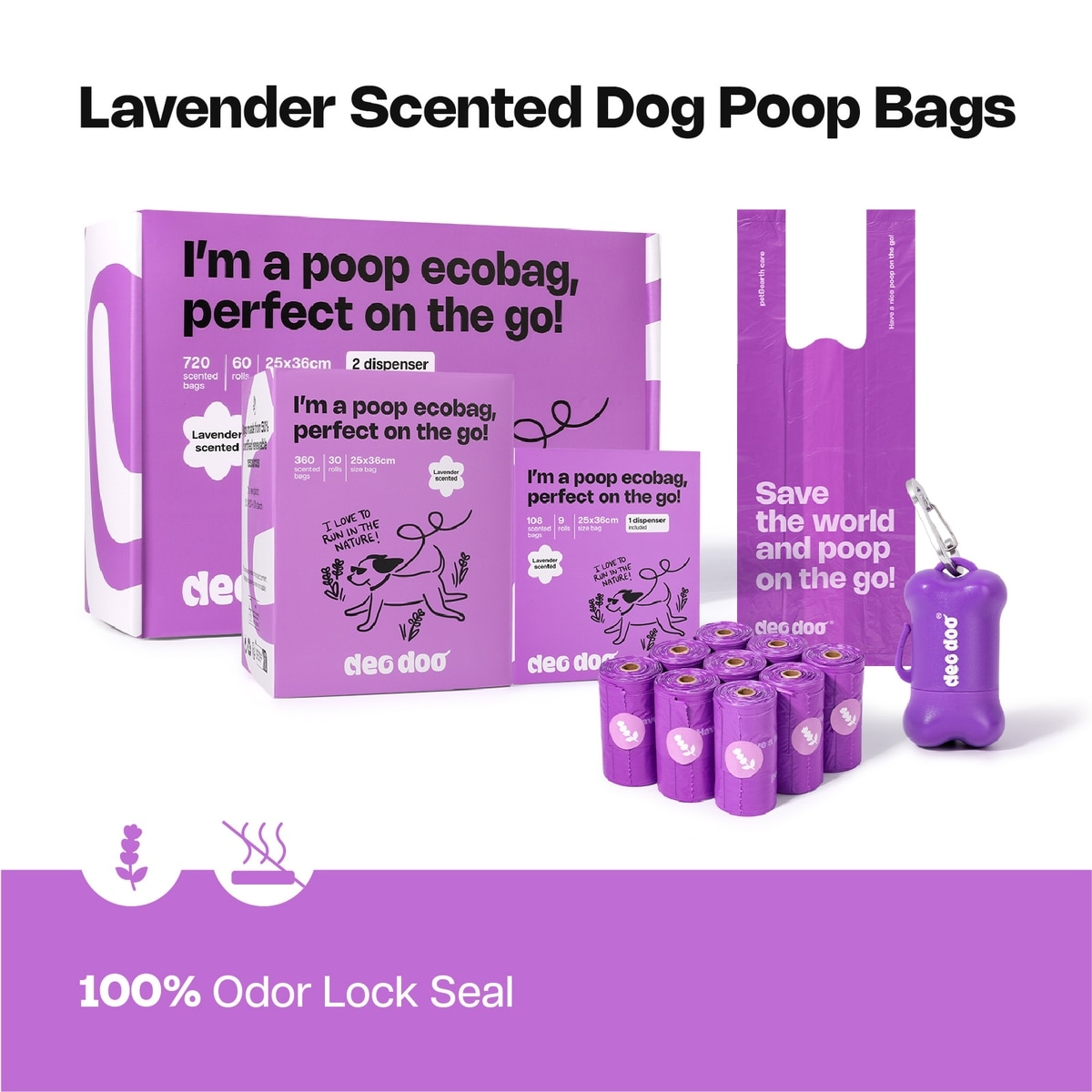 Deo Doo Dog Poop Bags with Handles, Lavender Scented, 360 count