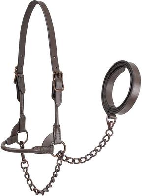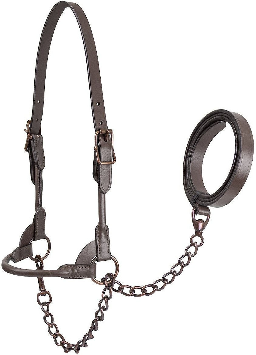 Derby Originals Bronze Beauty Premium Round Rolled Leather Cattle Show Halter & Chain Lead, Havana, Small