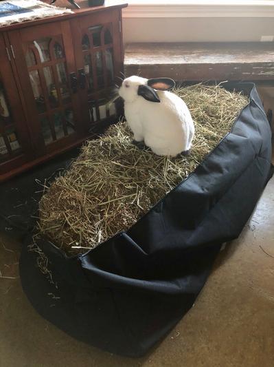 This bale cover is made of a heavy-duty poly/nylon material to hold 50 pounds of hay maximum. Using bales above 50 pounds could damage the cover.