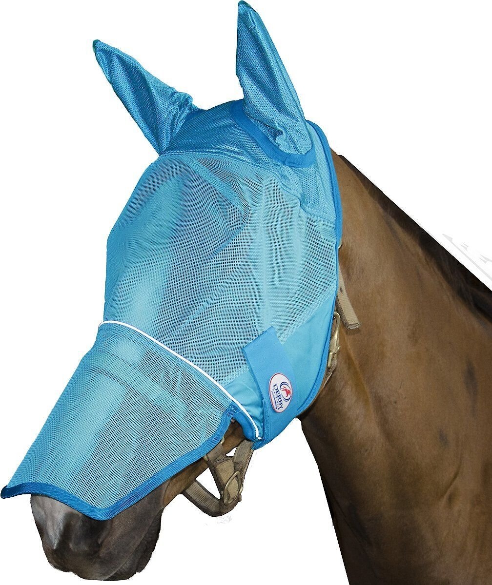Derby Originals Reflective Horse Fly Mask with Ear & Nose Cover, Summer Blue, Full Horse
