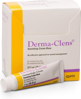 Derma-Clens Dog & Cat Dermatologic Cream can be used on wounds, abrasions, burns and dermatological conditions in dogs and cats. It removed non-living tissue from wounds, abrasions and burns to promote healing.