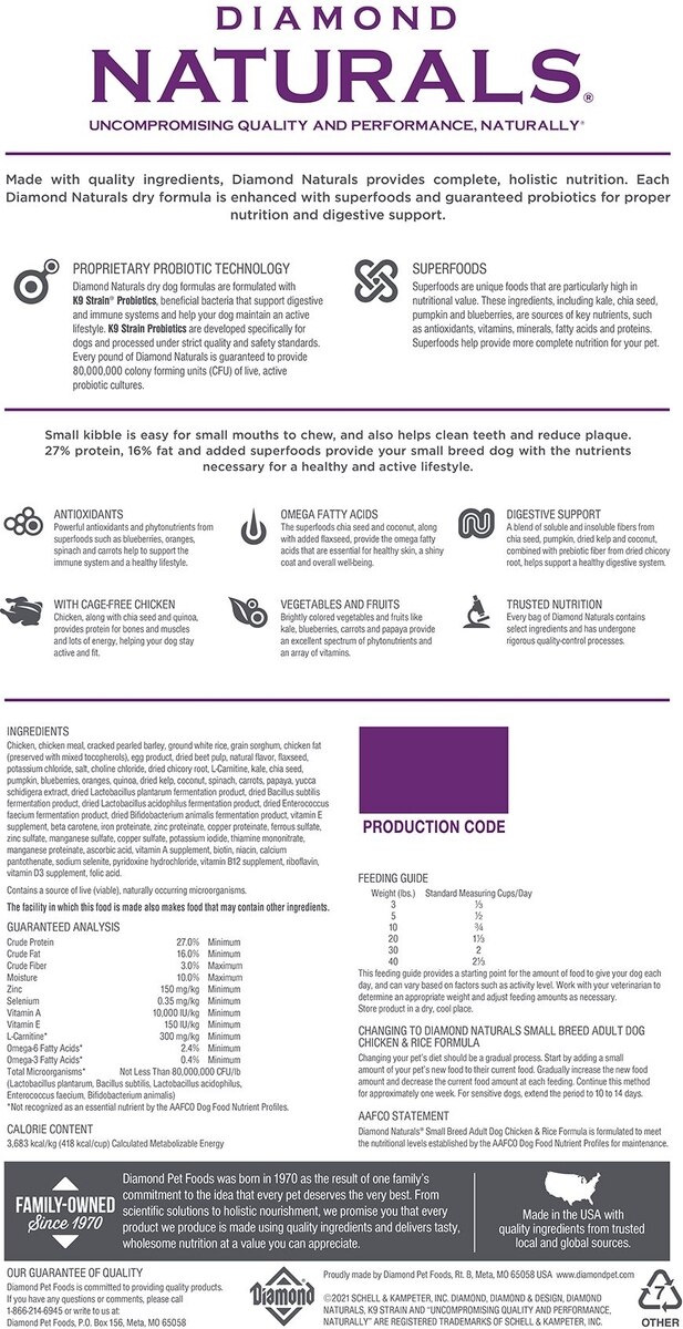 Diamond Naturals Small Breed Adult Chicken & Rice Formula Dry Dog Food, 36-lb bundle