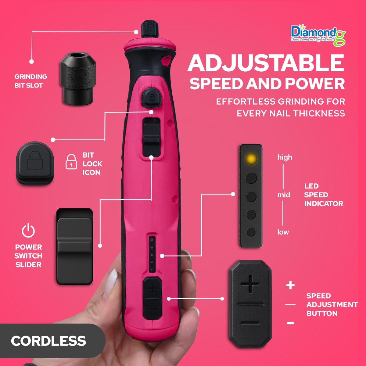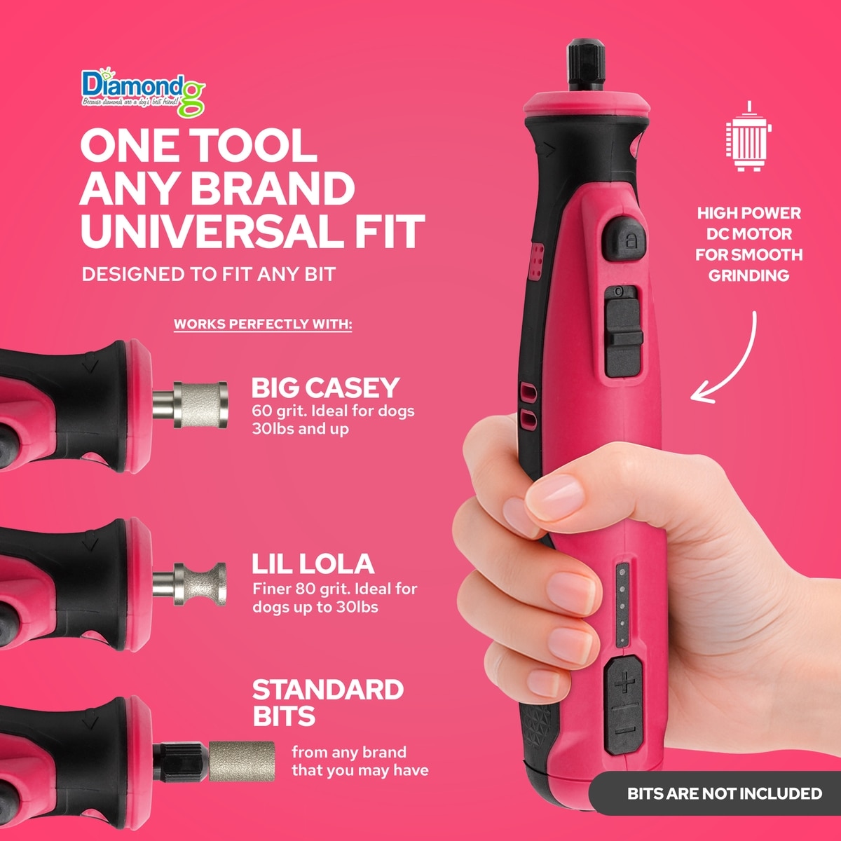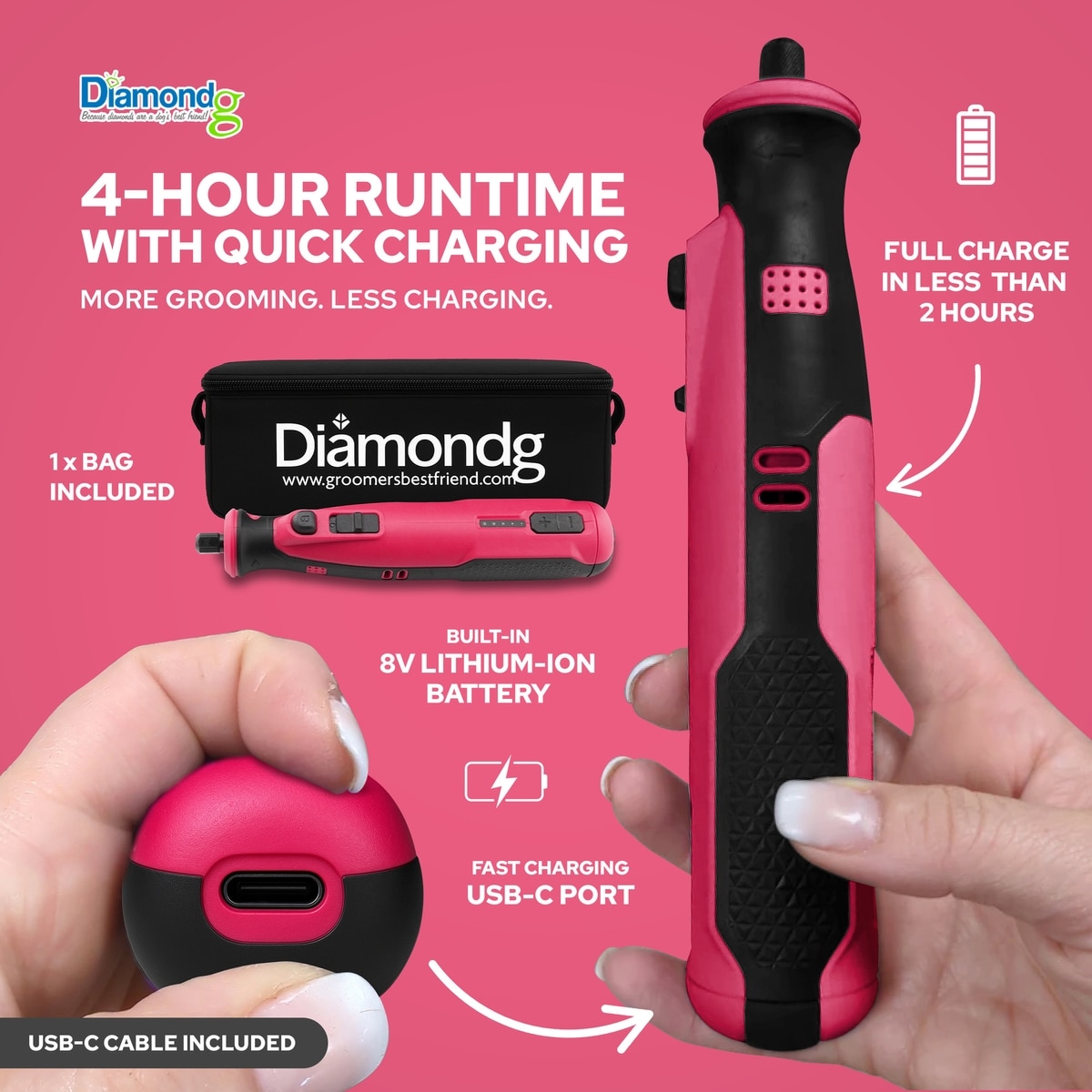 Diamondg Cordless Heavy Duty Rotary Tool Alternative to Toenail Clippers & Filers Electric Dog Nail Grinder with Quiet Sound & LED Tip, Pink