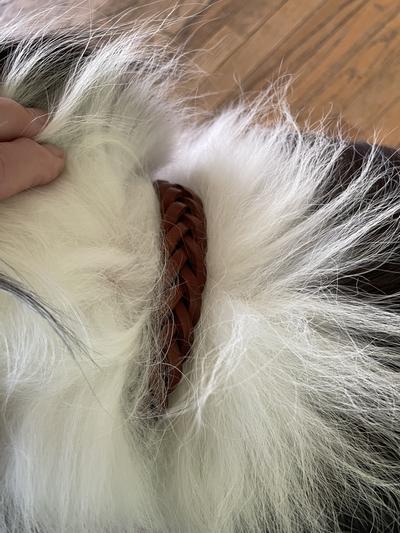 Love leather collars for the dogs. My favorite are the rolled leather ones but can't seem to find them. This is a beautiful substitute. The braiding is flexible, airy, and beautifully done. I have Australian shepherds and leather seems to be easier on the long fur than the nylon. Much prefer buckle collars over the snap ones. Doggie charm is cute. If you also prefer leather over nylon in a collar, this one ticks all the boxes!