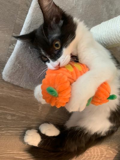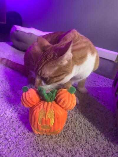 This Mickey Pumpkin toy is so cute and really durable. My kitties love it!