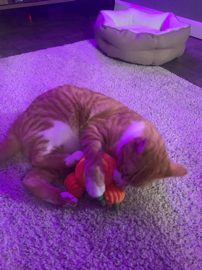 My kitty Vivian loves most things CATNIP and this is not an exception! She bites the pumpkin ears and bunny kicks the Mickey face. So cute and holding up well.