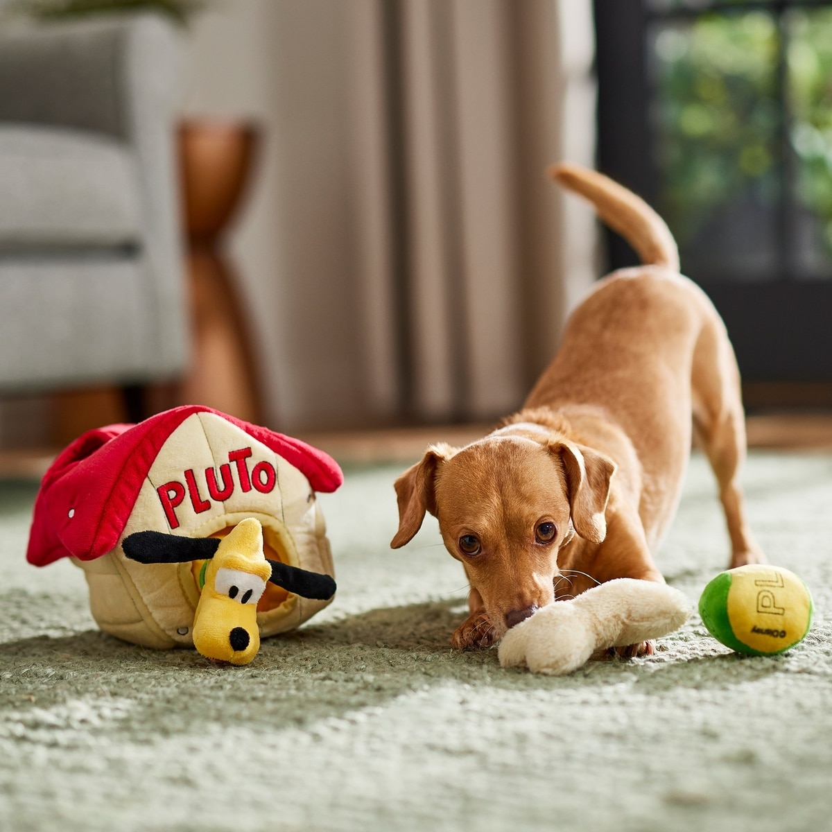 Disney Pluto's Dog House Hide & Seek Puzzle Plush Squeaky Dog Toy, Small